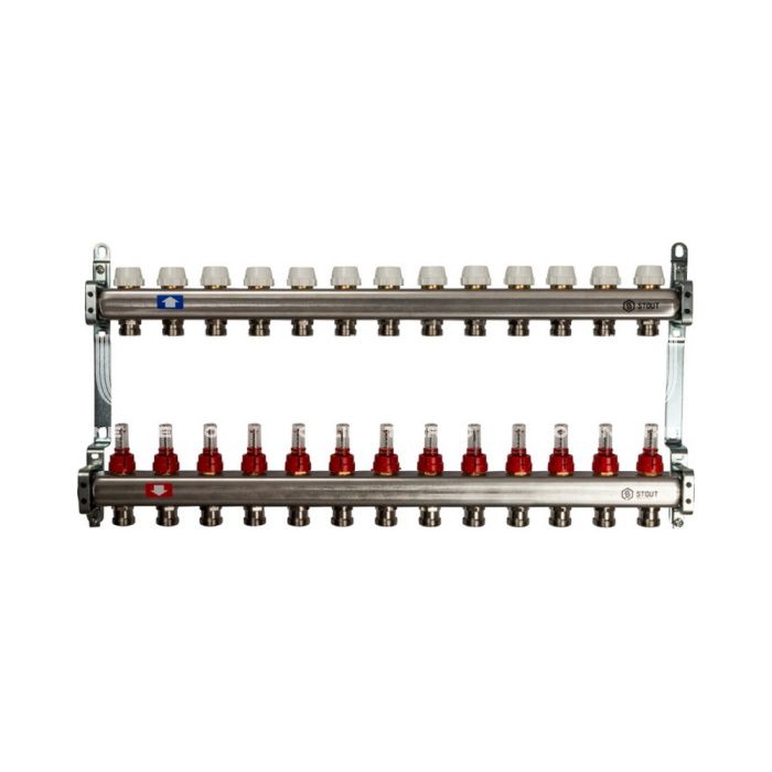 Коллектор Stout из нержавеющей стали с расходомерами 13 вых.