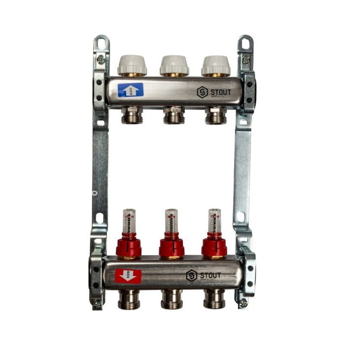 Коллектор Stout из нержавеющей стали с расходомерами 3 вых.