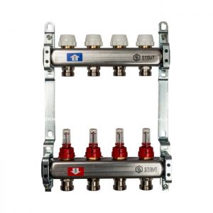 Коллектор Stout из нержавеющей стали с расходомерами 4 вых.