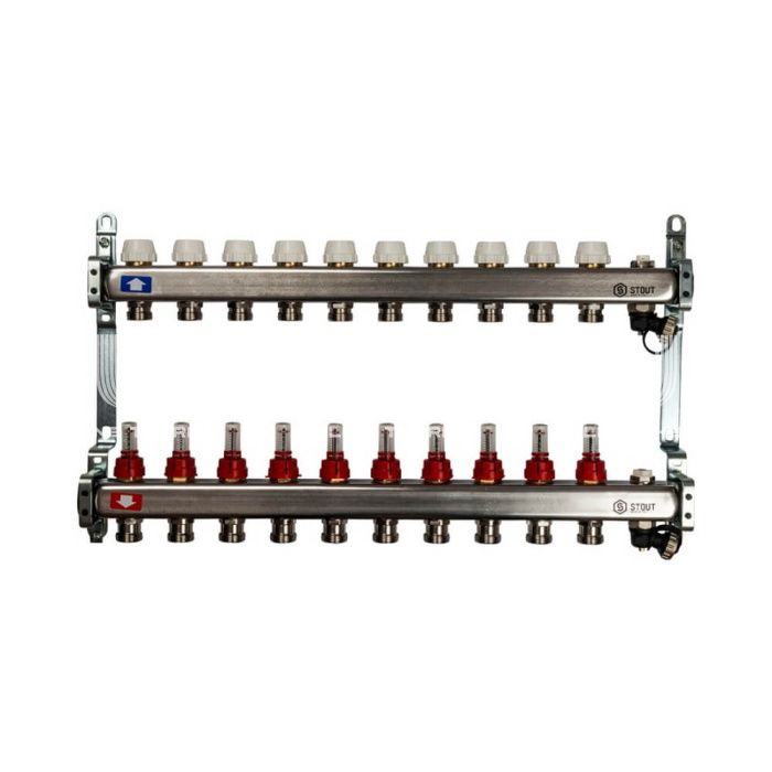 Коллектор Stout из нержавеющей стали с расходомерами, с воздухоотв. и сливом 10 вых.
