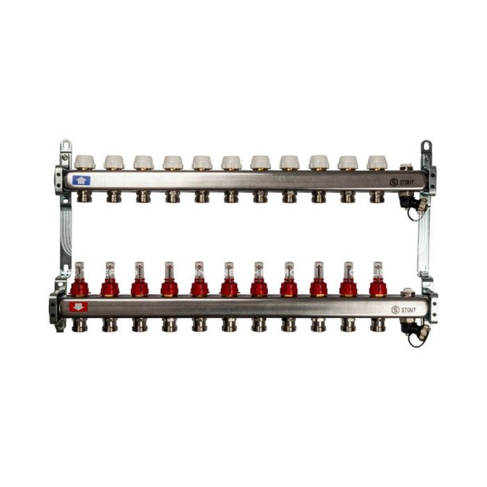 Коллектор Stout из нержавеющей стали с расходомерами, с воздухоотв. и сливом 11 вых.