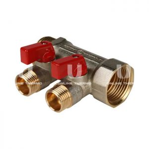 Коллектор Stout с шаровыми кранами 1", 2 отвода 1/2" (красные ручки)