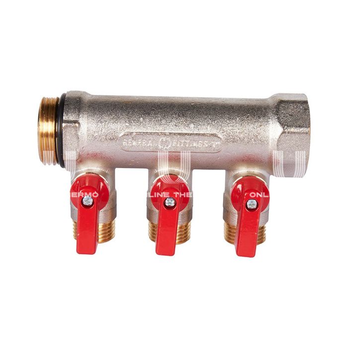 Коллектор Stout с шаровыми кранами SMB 6210 1", 3 отвода 1/2" (красные ручки)