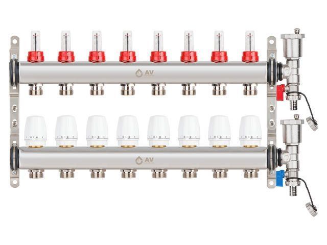 Коллекторная группа AVE136, 8 вых. AV Engineering(PRO серия Для теплого пола и водоснабжения)