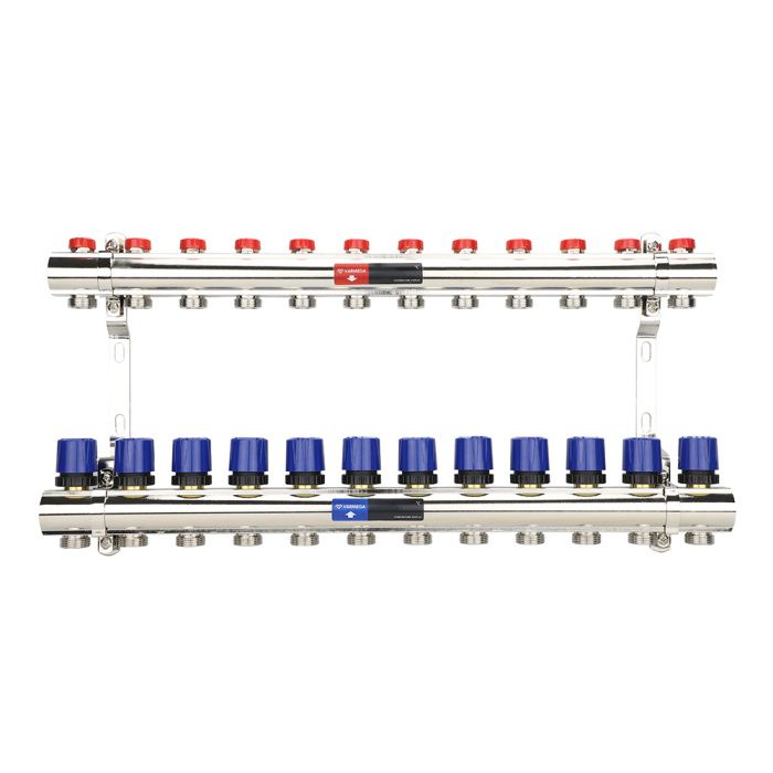Коллекторная группа для отопления Varmega VM15812 ВР 1", на 12 контуров 3/4" EK, латунь