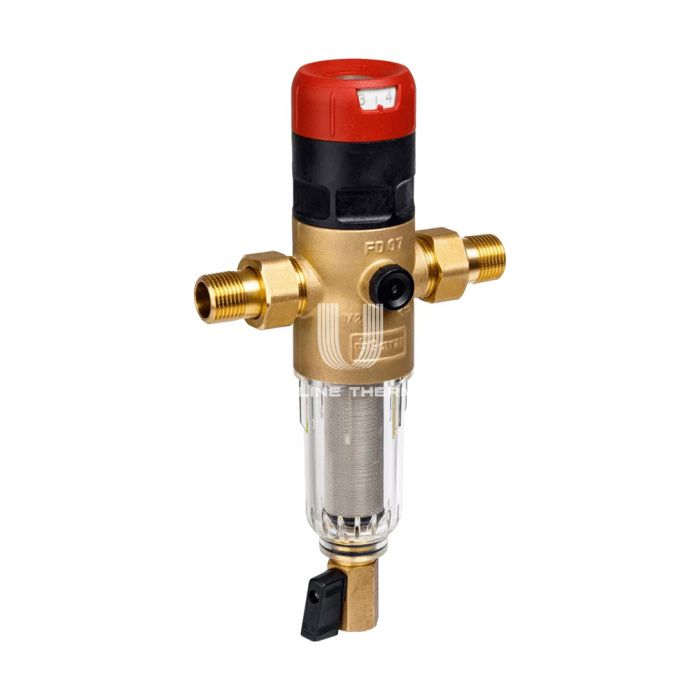 Комбинированное устройство серии Goetze FD07 объединяет в одном корпусе промывной сетчатый фильтр Goetze FD07 и редуктор давления Goetze DR07. Этот прибор предназначен для выполнения сразу двух задач: для предотвращения разрушающего воздействия механических частиц на весь водопровод вместе с подключённой к нему техникой, включая собственный внутренний механизм редуктора давления. Сетчатый фильтр удаляет из воды нерастворимые механические частицы размером более 100 микрон, и позволяет промывать сетку не прерывая работу всего устройства; для защиты водопроводной сети и подключенных к ней устройств от избыточного давления холодной воды. Редуктор снижает входное давление до постоянного уровня, задаваемого с помощью регулировочной ручки c цифровой шкалой. Комбинированные сетчатые фильтры с редуктором давления Goetze серии FD07 выполнены по новейшей технологии, с использованием современных материалов, обеспечивающих непревзойденные технические характеристики в сочетании с экологичностью и удобством эксплуатации. Характерные черты фильтров со встроенным редуктором Goetze: оптимизированная конструкция корпуса обеспечивает увеличенную производительность при номинальном падении давления (Kvs); стабильность работы редуктора во всем диапазоне температур, вплоть до 85ºС (модели с металлической колбой); отсутствие кавитации и стойкость к загрязнениям благодаря инновационному материалу (медицинский пластик) для клапанной вставки и чаши; двухсторонняя конструкция цифровой шкалы настройки позволяет видеть её из любого положения в процессе регулировки давления; возможность очистки/замены сетки и колбы без сброса давления на выходе клапана; возможность проведения иных сервисных и ремонтных работ без демонтажа редуктора из водопровода. Области практического применения: Для устранения рисков повреждения сантехнических устройств и бытовой техники в результате разрушающего воздействия нерастворимых твёрдых механических частиц. Для предотвращения образования очагов электрохимической коррозии, в результате попадания в водопровод стружки, окалины и других металлических частиц. Для устранения накопительного загрязняющего эффекта, уменьшающего проходное сечение труб и внутренние каналы подачи воды в сантехнических приборах и бытовой технике. Для регулируемого понижения давления воды до комфортного уровня. Для защиты сантехники и оборудования от гидроударов. Для снижения расхода воды (до 30%) путем сокращения нецелевых потерь. Для фиксации баланса давлений в магистралях холодной и горячей воды. Для устранения взаимного влияния нескольких точек водоразбора: как внешних (например, соседи), так и внутренних (например, душ/унитаз). Для создания зон одинакового давления в удаленных точках водоразбора (например, на разных этажах) или, наоборот - для создания разных зон давления на соседних точках водоразбора (например, умывальник/душ). ВАЖНО: если входное давление упадёт ниже установленного уровня, давление на выходе также снизится. При возникновении расхода воды, давление на выходе редуктора начинает падать, тогда клапан приоткрывается и автоматически выравнивает давление до заданного ранее уровня.