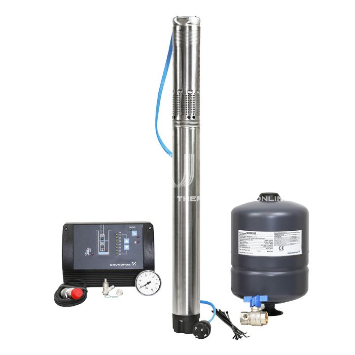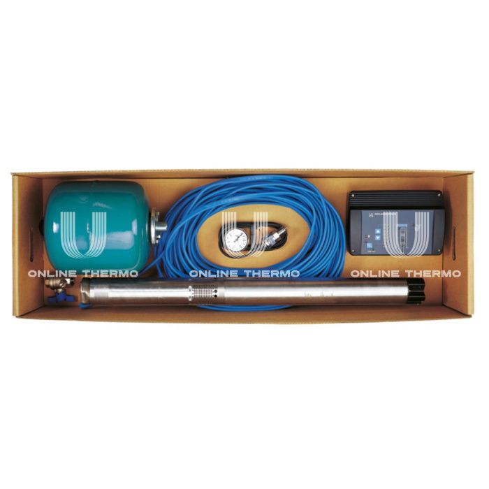 Комплект Grundfos для поддержания постоянного давления с насосом SQE – это полный набор, позволяющий обеспечить постоянный напор воды в системе при обслуживании частных домов, небольших водопроводных станций и при подаче грунтовой воды в систему водоснабжения дома. В комплект для поддержания постоянного давления входит все необходимое для монтажа: Погружной насос SQE с плоским кабелем в водонепроницаемой оболочке; Блок управления CU301; Гидроаккумулятор 8 л; Датчик давления на 0-6 бар; Манометр на 0-10 бар; Запорный кран 3/4" со сливом; Зажимы для крепления кабеля (20 штук). Скважинные погружные насосы Grundfos SQ и SQE идеально подходят для автономного водоснабжения жилых домов. Насосы SQ и SQE обладают широким диапазоном по производительности и напору, это дает возможность потребителю выбрать насос, идеально подходящий под его индивидуальные требования. Применение скважинных насосов SQ, SQE Насосы SQ и SQE предназначены для перекачивания чистых, неагрессивных жидкостей, не содержащих твердых частиц или волокон, содержание песка в которых составляет менее 50 г/м 3 . Более высокое содержание песка уменьшает срок службы насоса. Насосы SQ/SQE являются компактными, трёхдюймовыми, многоступенчатыми, центробежными насосами, которые могут устанавливаться даже в самой узкой скважине (минимальный диаметр скважины 76 мм). Встроенные электронные компоненты повышают уровень комфорта и значительно облегчают эксплуатацию насосов серии SQ/SQE. Они гарантируют надёжное водоснабжение при любых условиях. Данные насосы компактны и просты в установке, они оснащены двигателями с постоянными магнитами, обеспечивают высокую эффективность и подачу напора до 200 м. Если насос SQE соединён с блоком управления Grundfos CU 301, то это позволяет обеспечить подачу воды с постоянным давлением. Обычно эти насосы применяются: для подачи грунтовой воды в системы водоснабжения; для частных домов; для небольших водопроводных станций; для ирригационных систем; для перекачивания воды в резервуары. Особенности насосов SQ, SQE защита от работы «всухую»; высокий КПД насоса и электродвигателя; высокая износостойкость; защита от обратного осевого смещения ("всплытия") рабочего колеса; плавный пуск; защита от перенапряжения и падения напряжения; защита от перегрузки; защита от перегрева. Дополнительные функции насосов типа SQE: Регулируемая частота вращения двигателя (с подсоединением к CU 301); Подсоединение к CU 301 для электронного управления и дистанционной связи. Отличие насосов SQ и SQE Насосы SQE отличаются от серии SQ тем, что имеют функцию регулирования параметров насоса путем изменения частоты вращения электродвигателя. Возможность регулирования частоты вращения электродвигателя позволяет задать давление на выходе насоса с учетом параметров конкретной системы водоснабжения, а также поддерживать это давление постоянным вне зависимости от количества открытых водоразборных кранов.