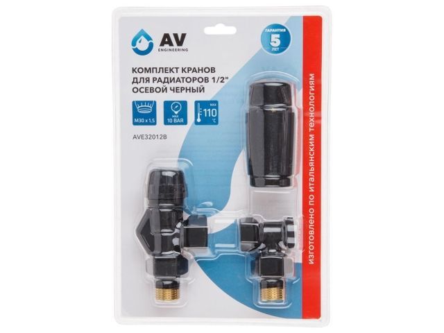 Комплект кранов осевой 1/2' для радиатора Черный, AV Engineering (инд. упак.)(M30x1.5)