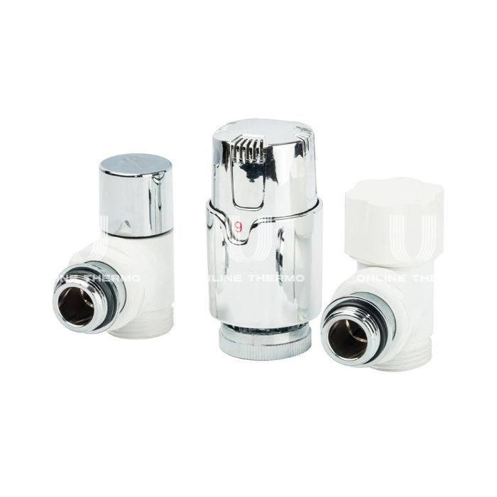 Комплект Luxor KT 259 A из термостатического и запорного клапана 1/2" НР и термоголовки 14702703CBLUX, угловой, с преднастройкой