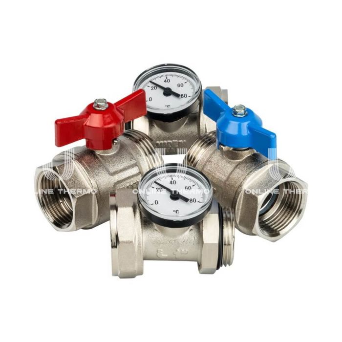 Комплект прямых шаровых кранов Stout с термометрами 1”