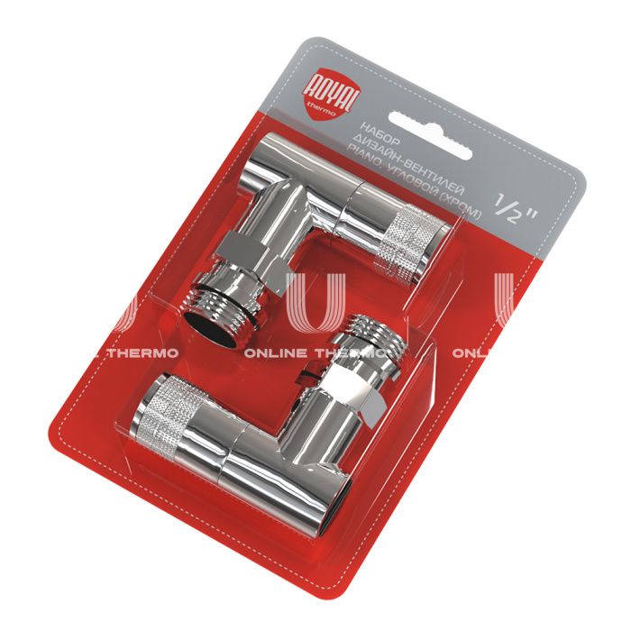 Комплект радиаторных клапанов (вентилей) ручной регулировки Royal Thermo Piano RTE 50.028 1/2" ВР-НР, угловой, с антипротечкой, комплект из 2 шт.