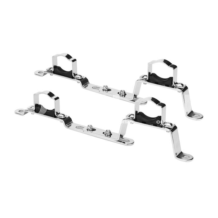 Кронштейны предназначены для крепления к несущей конструкции (стене или коллекторному шкафу) подающего и обратного коллекторов из нержавеющей стали Varmega серий VM151XX, VM155XX. Кронштейны состоят из стальной крепежной планки, к которой винтами крепится пара стальных никелированных хомутов с пластиковыми прокладками. Прокладки служат тепло- и виброзащитой, а также предохраняют коллекторы от механических повреждений. Кронштейны обеспечивают регулируемое расположение коллекторов между осями от 195 и до 235 мм. Комплект состоит из 2-х штук.