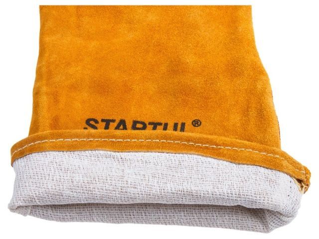 Краги STARTUL обеспечивают высокую механическую защиту, защиту от повышенных температур - открытого пламени, искр и брызг расплавленного металла. Ладонь и большой палец усилены защитной накладкой. Изготавливаются такие краги из высококачественного спилка, который отстрочен надежным двойным швом, усиливающим прочность изделия. Хлопчатобумажная подкладка обеспечивает дополнительный комфорт и позволяет использовать краги при температурах ниже нуля. Швы на крагах выполняются особо прочной негорючей нитью и закрыты вставками из спилка, которые предотвращают прогорание ниток.