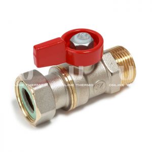 Кран шаровой стандартнопроходной Giacomini серии R254P-1 с наружной резьбой для котлов и счетчиков, с отводом с накидной гайкой и ручкой-флажком. Технические характеристики: температурный диапазон: от -20 до 120°C (-20°C для 50% гликолевых растворов); максимальное рабочее давление при 20°C для воды и не опасных газов: 1,6 МПа (16 бар); материал: латунь.