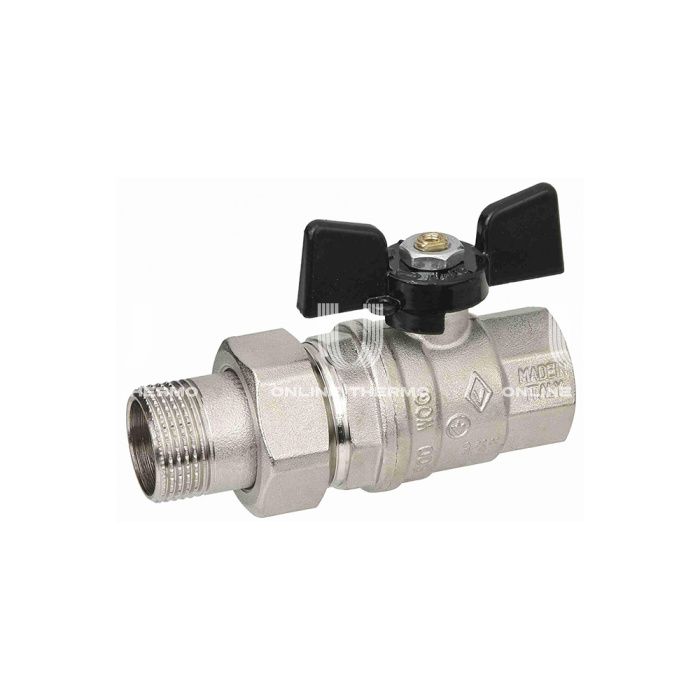 Кран шаровый с разъемным соединением Bugatti Oregon 03220037 1" НР-ВР, 322, полнопроходной, ручка-бабочка