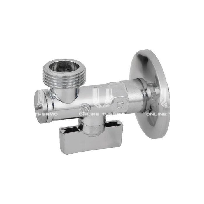 Кран шаровый угловой с фильтром для сантехнических приборов Bugatti Minnesota 08710007 1/2"x 1/2" НР-НР, 871, с розеткой, ручка-флажок