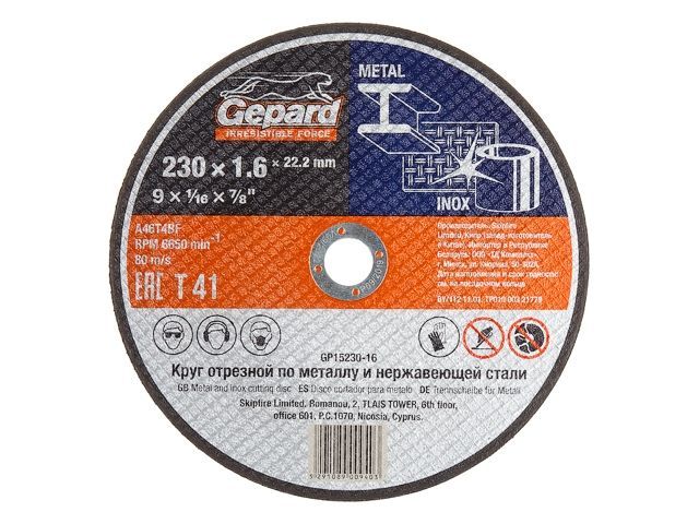 Круг отрезной 230х1.6x22.2 мм для металла и нерж. стали GEPARD