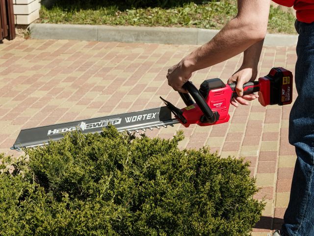 Аккумуляторный кусторез предназначен для обработки живой изгороди.