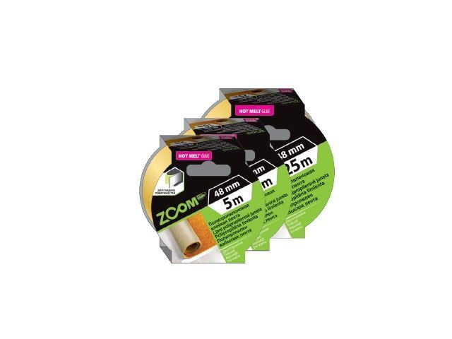 Лента двухсторонняя полипропиленовая клейкая 48ммх10м ZOOM(Желтая)