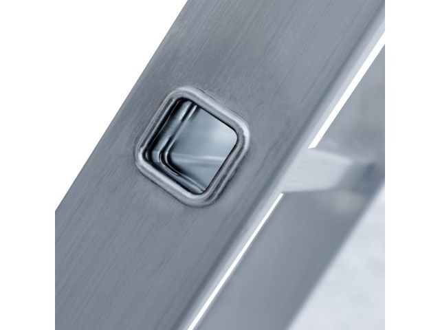 Высота лестницы - 553см, высота стремянки - 300см. Макс. нагрузка -150 кг. Варианты использования: - приставная лестница; - приставная выдвижная лестница; - стремянка. Технические преимущества: - прочность и надёжность при небольшом весе изделия; - стойки и ступени изготовлены из прессованного профиля; - многократная развальцовка в соединении ступеней со стойками обеспечивает высокую прочность и долговечность; - рифлёные ступени с шагом 260мм для безопасного подъёма и спуска; - алюминиевые направляющие кронштейны надёжно удерживают выдвижную секцию во всех рабочих положениях; - зацепы с автоматическим фиксатором; - широкая поперечная траверса обеспечивает высокую устойчивость; - надёжно закреплённые на стойках и траверсе пластиковые наконечники препятствуют скольжению.