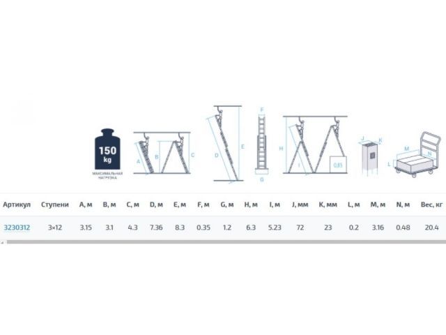 Лестница алюм. 3-х секц. 309/796/328 см 3х12 ступ. 20,2кг NV3230 Новая Высота(макс. нагрузка 150кг)