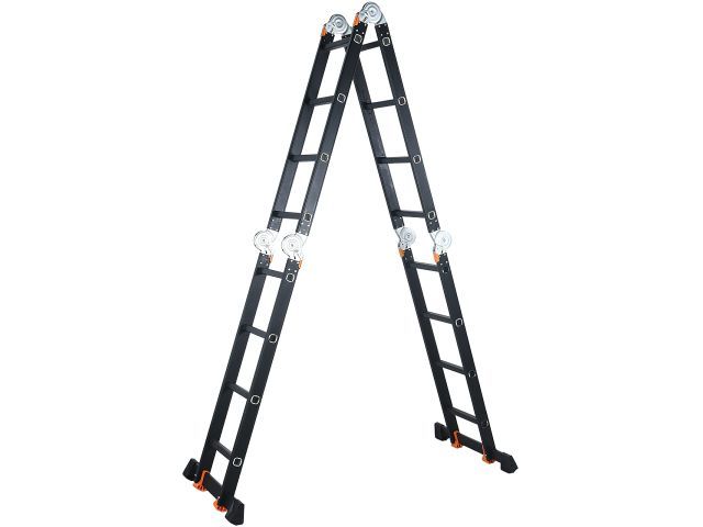 Лестница алюм. многофункц.4х4 ступ.(стрем.-229см,лестн.-465см) 13,8кг BLACK LINE STARTUL (ST9930-04)(усиленное шарнирное соединение, прорезиненные колеса и доп.стабилизаторы)