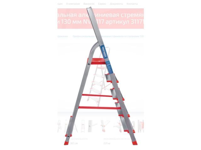 Высота до площадки - 107 см; высота до дуги безопасности - 172 см; макс. нагрузка - 225 кг. Технические преимущества: - имеет повышенную прочность и надёжность при небольшом весе изделия; - легко устанавливается и обеспечивает высокий уровень комфорта; - ступени и стойки из прессованных алюминиевых профилей увеличенного сечения; - широкие увеличенные ступени глубиной 130 мм; - рифлёная поверхность ступеней способствует безопасному подъёму и спуску; - прочное крепление ступеней к боковинам заклёпками придаёт конструкции высокую устойчивость; - рифлёная безопасная площадка площадка из оцинкованной стали с порошковой покраской; - дуга безопасности 600 мм; - прочные страховочные ремни; - опорные наконечники из прочного пластика обеспечивают устойчивое положение; - компактность при хранении и транспортировке; - практичность и внимание к каждой детали гарантируют безопасность работы на любой высоте.
