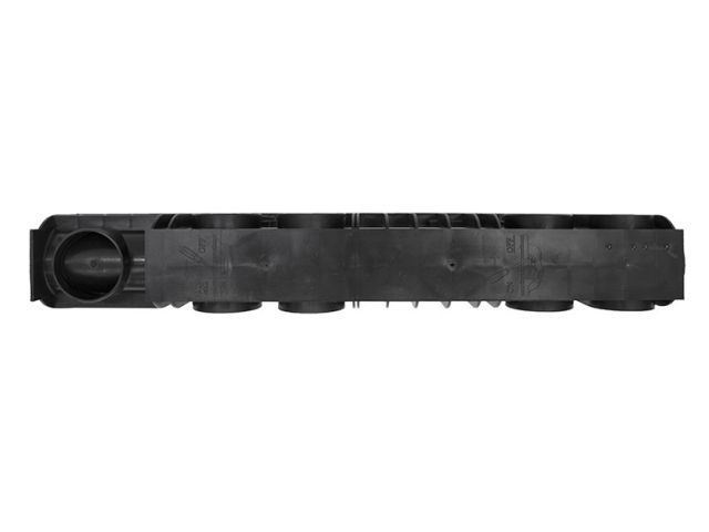 Канал пластиковый системы STANDART из вторичного ПЭ-ПП. Сформированное отверстие для подключения труб O 110 для выпуска через дно лотка. Боковое сформированное отверстие для подключения труб O 50 мм и O 100. Специальный паз для подключения других лотков п:стальная оцинкованная планка с болтом. Класс нагрузки А 15