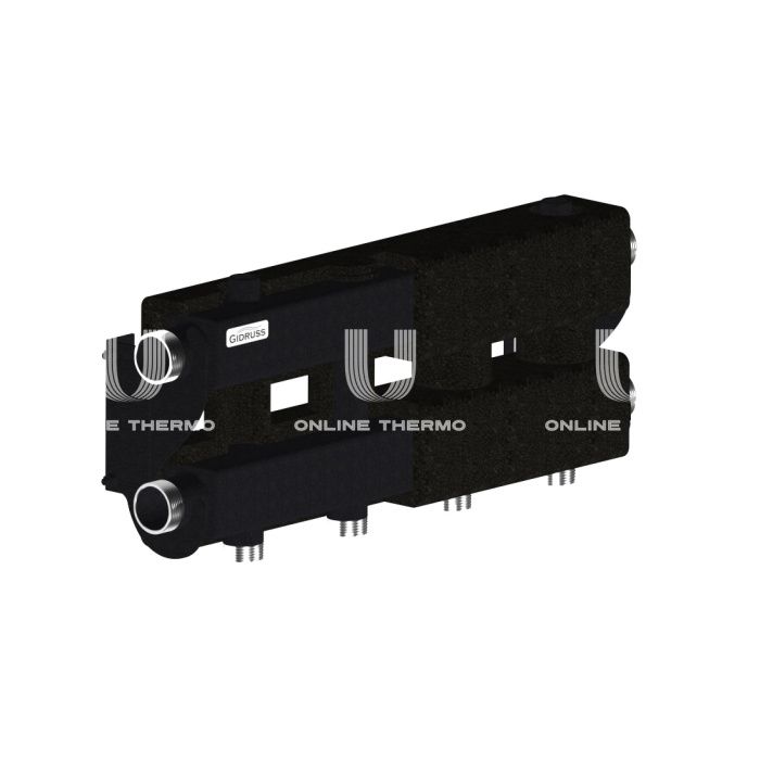 Модульный распределительный коллектор Gidruss (Гидрусс) MK-100-2.EPP, до 100 кВт, конструкционная сталь, с термоизоляцией, черный муар, универсальное подключение термодатчика