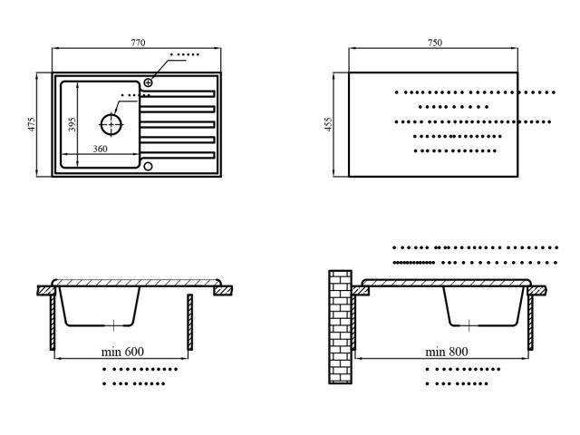 Мойка кухонная из искусственного камня ART серый 770х475 мм, AV Engineering