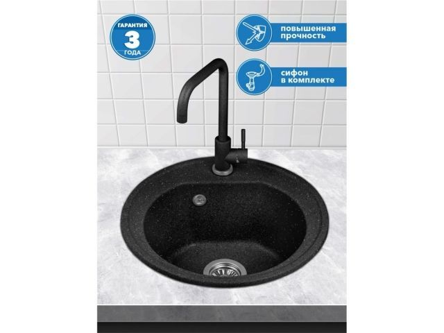 Мойка кухонная из искусственного камня RICHI черный 510х510 мм, AV Engineering