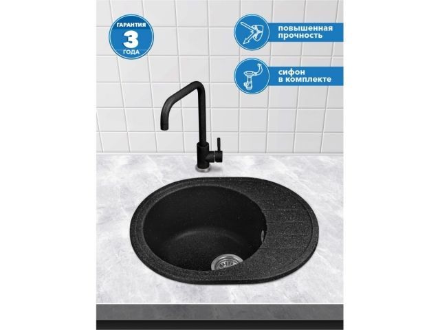 Мойка кухонная из искусственного камня RIO черный, 570х450 мм, AV Engineering