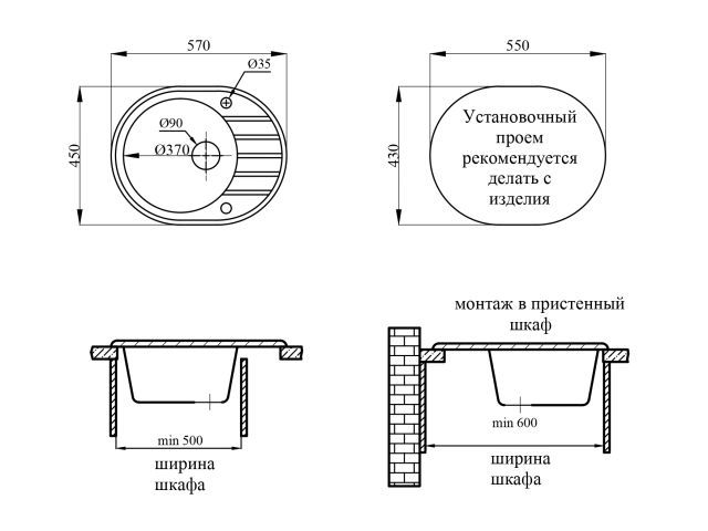 Мойка кухонная из искусственного камня RIO песочный, 570х450 мм, AV Engineering