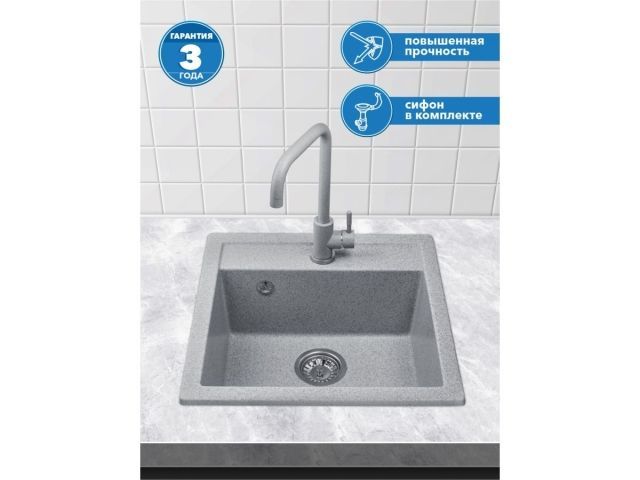 Мойка кухонная из искусственного камня STAR серый 510х505 мм, AV Engineering