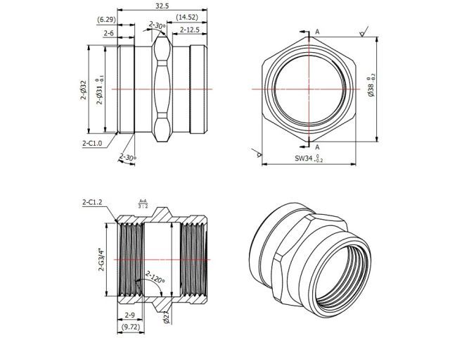 Материал:Латунь (CW617N)