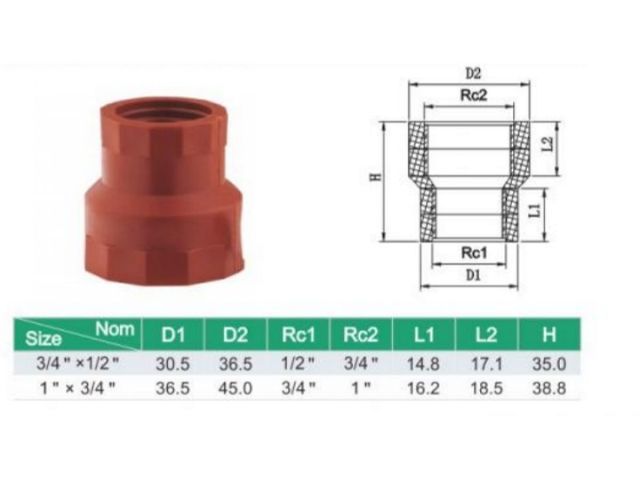 Муфта ПП ред. 1' вн. х 3/4' вн. кор., AV Engineering(Полипропилен, макс. 1 бар, макс. 40 °С, для 5 к.с.)
