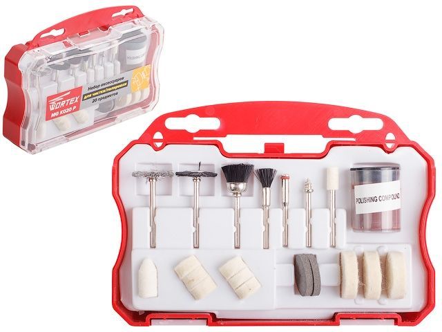 Набор аксессуаров для гравера 20 предметов в боксе (для чистки/полировки)