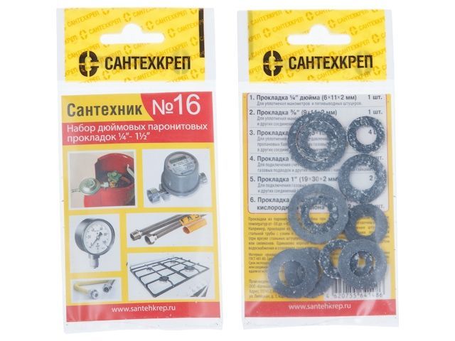 Набор прокладок 'Сантехник №16'(Набор паронитовых прокладок)