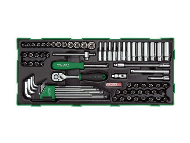 Ложемент TOPTUL набор головок, шестигранников Г-образных с шаровым окончанием с принадлежностями 14 72 предмета GTB7202 - изготовлен из высококачественных инструментальных материалов, что обеспечит надежность и долговечность инструмента в ходе эксплуатации.