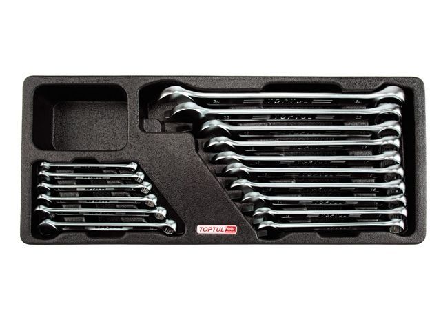 Набор-сет в ложементе ключей комбинированных 6-24 мм TOPTUL состоит из 16 предметов. Рекомендуется для профессионального использования