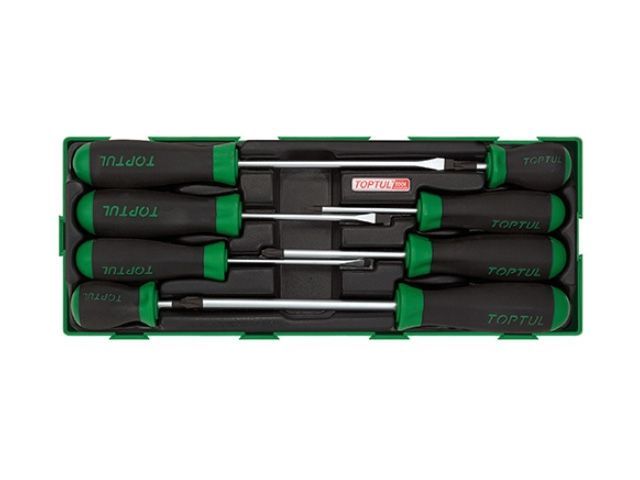 Ложемент TOPTUL набор отверток 8 пр. GTA0823 - изготовлен из высококачественных инструментальных материалов, что обеспечит надежность и долговечность инструмента в ходе эксплуатации.