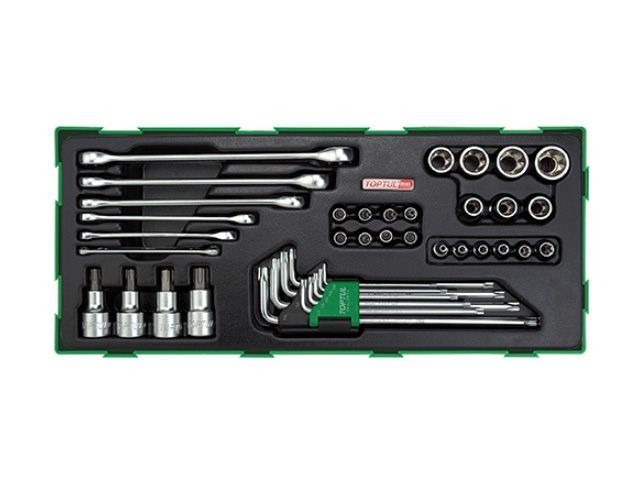 Ложемент TOPTUL набор торцевых головок и ключей 40 пр. GTB4006 - изготовлен из высококачественных инструментальных материалов, что обеспечит надежность и долговечность инструмента в ходе эксплуатации.