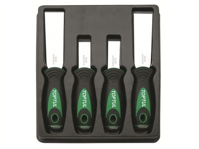 Набор TOPTUL состоит из 4 скребков, изготовленных из нержавеющей стали, и предназначен для удаления остатков стекольного клея с кузова автомобиля. Рекомендуется для профессионального использования. Размеры: 32x100x2,5; 20x50x1,2; 20x50x2,5; 32x100x1,2 мм.