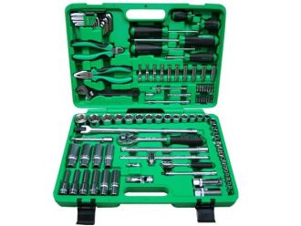 Комплектация Ящик для инструментов Головка торцевая 14: 4, 4.5, 5, 5.5, 6, 7, 8, 9, 10, 11, 12, 13 мм Головка торцевая длиная 14: 4, 4.5, 5, 5.5, 6, 7, 8, 9, 10, 11, 12, 13 мм Головка торцевая 12: 10, 11, 12, 13, 14, 15, 16, 17, 18, 19, 20, 21, 22, 23, 24, 27, 30, 32 мм Головка торцевая длиная 12: 10, 12, 13, 14, 16, 17, 19, 21, 22, 24 мм Удлинитель 14 100 мм Удлинитель 12 125 мм Удлинитель 12 250 мм Вороток 14 с плавающей головкой 115 мм Вороток 12 с плавающей головкой 250 мм Кардан 14 Кардан 12 Свечная головка 16 мм 12 Свечная головка 21 мм 12 Трещотка 14 36 зубцов (резиновая ручка) Трещотка 12 36 зубцов (резиновая ручка) Вороток-отвертка 14 150 мм Гибкий вал 14 Держатель бит 14 х 14 Набор бит L: 4 x 0.5, 5.5 x 1, 6.5 x 1.2 Набор бит Torx: T10-T40 Отвертка крестовая PH2 x 25 мм Отвертка шлицевая: 5.5 x 100 мм, 6.5 x 150 мм Отвертка крестовая: PH2 x 100 мм, PH3 x 150 мм Бокорезы 7 Плоскогубцы 7 Ключ разводной 8 Набор Г-обр.шестигранников 1.5-10 мм 9 ед.