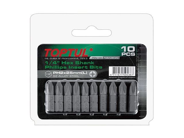Насадка крестообразная PH1 25мм 10шт блистер TOPTUL