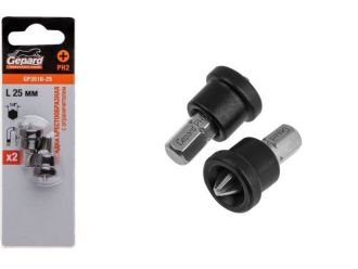 Насадка крестообразная PH2 25мм с ограничителем 2шт. GEPARD (GP3516-25)(бита Phillips для ГКЛ сталь S2 магнитная)