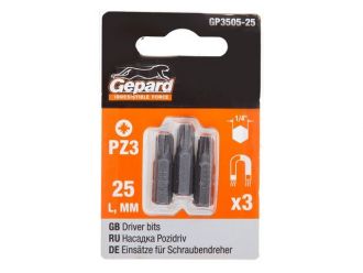 Насадка крестообразная PZ3 25мм 3шт GEPARD (GP3505-25)(бита Pozidrive позидрив сталь S2 магнитная)