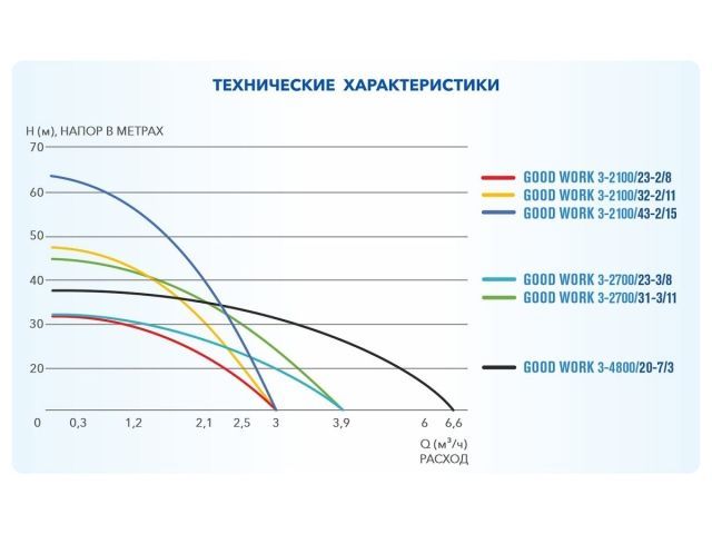 Расшифровка модели насоса на примере: AGELESS-3-210023-28 - Сначала идет серия: AGELESS - серия насосов с 2м кабелем требующим удлинения (вилки нет) GOOD WORK - серия насосов с длинным кабелем вилка - Затем диаметр насоса: 2,5 - диаметр 2,5 дюйма 3 - диаметр 3 дюйма - Далее следует производительность: 210023 - значит, что насос качает 2,1 м3 в час при напоре 23 м - Затем идет обозначение максимальной производительности: 2 - до 3 м3 в час. 3 - до 4 м3 в час - Количество рабочих колёс обозначается последней цифрой: - Обозначение наличия пусковой коробки: А (буква А есть) - пусковой коробки нет (значит конденсатор внутри корпуса насоса кабель трехжильный) (буквы А нет) - пусковая коробка есть (значит конденсатор внутри коробки кабель четырехжильный) В новых партиях в нижней части насоса есть крышка голубого цвета для защиты мотора насоса при транспортировке. Перед установкой её можно снять вместе с болтом. Можно и оставить. На эксплуатацию не влияет.