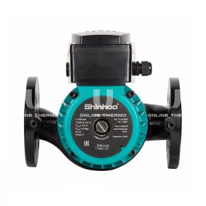 Насос циркуляционный Shinhoo серии BASIC фланцевый предназначен для циркуляции холодной и горячей воды в системах отопления и кондиционирования воздуха. Насос имеет три частоты вращения для выбора оптимальной производительности насоса для данной гидросистемы. Насос предназначен для перекачивания чистых, неагрессивных жидкостей, не содержащих твёрдых включений или волокон, которые могут оказывать механическое или химическое воздействие на насос. Насос должен устанавливаться так, чтобы вал электродвигателя располагался горизонтально. Насосы BASIC являются насосами с изолированным защитной гильзой ротором, т.е. насос и электродвигатель образуют единый узел без уплотнения вала. В этом узле применяются всего два уплотнительных кольца, а подшипники смазываются перекачиваемой жидкостью. Обладает тремя скоростями. Подшипники выполнены из керамики, защитная гильза, наружная оболочка ротора и подшипниковая пластина изготовлены из нержавеющей стали, корпус – из чугуна. В моделях от 300 Вт в обмотку статора встроен термовыключатель. Технические характеристики: температура перекачиваемой жидкости, °С: 2-110; температура окружающей среды, °C: 0-40; размер всасывающего патрубка, мм: DN 50; размер напорного патрубка, мм: DN 50; уровень шума, дБ: ≤54; класс изоляции (IEC 85): H.