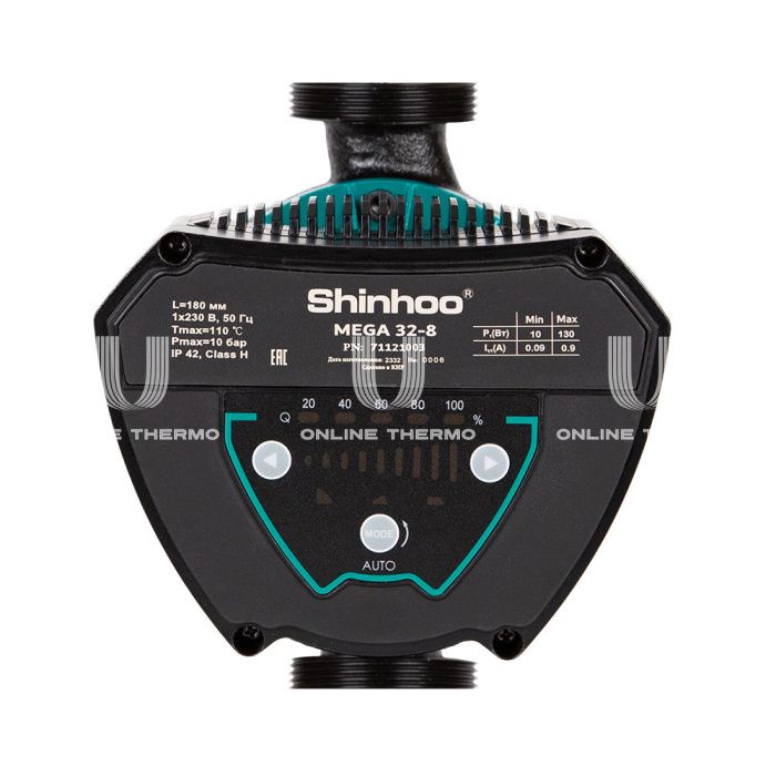 Насосы Shinhoo серии MEGA являются более совершенным и функциональным аналогом циркуляционных насосов серии BASIC. Насосы MEGA предназначены для обеспечения циркуляции жидкостей в отопительных системах с переменным расходом, где желательно задавать оптимальную рабочую точку насоса в целях снижения энергозатрат. Помимо этого, насос может применяться в системах кондиционирования и охлаждения, системах ГВС. Насос предназначен для перекачивания чистых, неагрессивных жидкостей, не содержащих твёрдых включений или волокон, которые могут оказывать механическое или химическое воздействие на насос. Насосы серии MEGA являются насосами с «мокрым» ротором, т.е. насос и двигатель составляют единый блок без торцевого уплотнения вала. В качестве смазки для подшипников используется перекачиваемая жидкость. Насос обладает 19 режимами управления с автоматически изменяющейся скоростью вращения вала двигателя, 9 режимами с постоянной скоростью и режимом под управлением внешнего контроллера по ШИМ-сигналу. Технические характеристики: температура перекачиваемой жидкости, °С: от -30 до +110; температура окружающей среды, °C: 0-40; уровень шума, дБ: ≤45; класс изоляции (IEC 85): H.